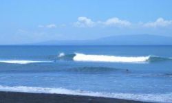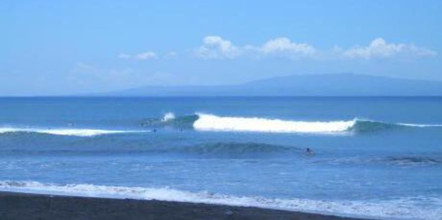 Black sand beach works best in the wet season when Kuta, etc. are onshore. The sand is *really* hot. Offers some barrels to get slotted in. Japanese infestaion can sometimes be a problem.