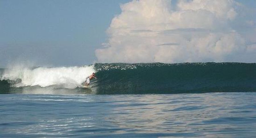 It is a fragile spot that in the future might change a bit dredging of sand from the river can affect the bottom contour of the point,its one of those spots you do true soul surfing in,looking at the rainforest from the water is an awesome experience,the sounds of the insects,at night the fireflys and latin music thru the air are the best