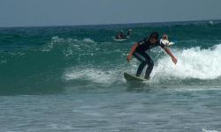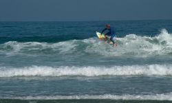 the beach has form of a half-moon and in the center its name is a great rock. The spots are in the right part and to get to them the best is to enter via the rocks. Although it seems to crazy people that nothing is going on, but there is a very strong current that leaves you opposite of the peak that breaks left.