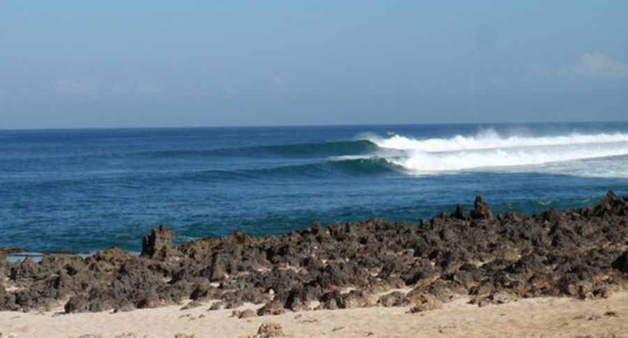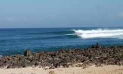 It's a dogdgy wave that is really only surfable small, as it breaks and ends quite close to rocks.