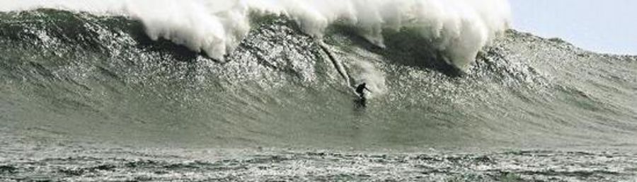 Big, powerful and frightening. The only consolation is that the break is a long way out and you are unlikely to hit the bottom. However with half the pacific ocean on your head this probably won't be your main preocupation.