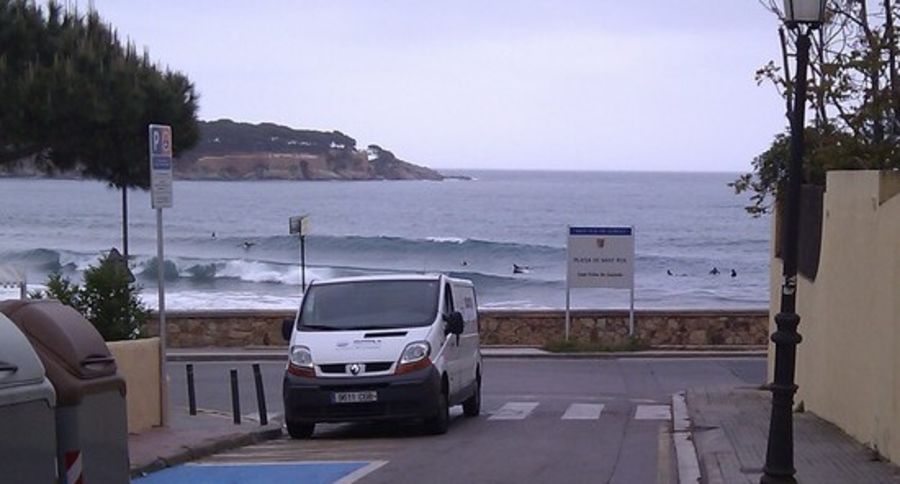 Drive to Sant Feliu de Guixols, in town go noth to Sant Pol, follow signs to Platja (Plaja) de Sant Pol. With small swell there are several beach breaks, on bigger swell a reefbreak 100m outside starts working.
