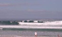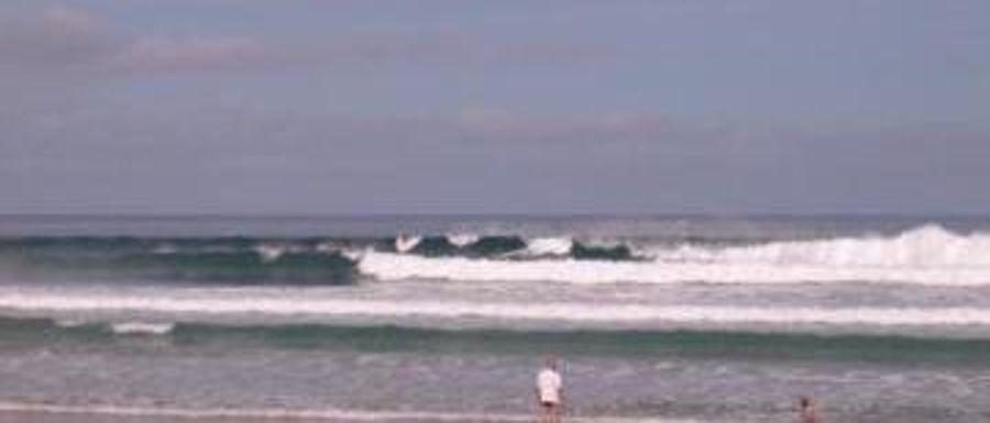 A safe spot with a sandy beach for those who don't surf [but it's north facing away from the sun]. Can be windy. Can be rips West to East out the back. Can be quite crowded especially at weekends. There are surf shops in the village where you can hire gear