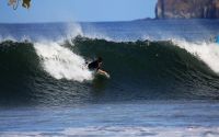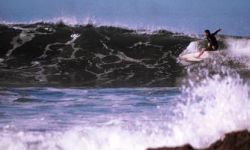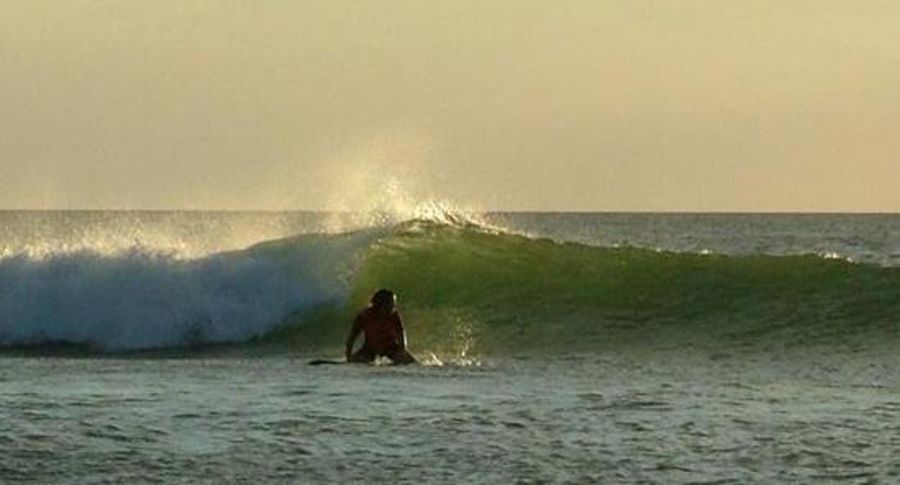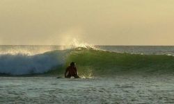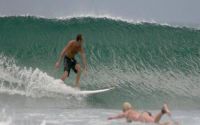 You will notice depending on the tide tha tthe wave peaks at the same place every time. Even though this is a river mouth there is a coral head that is exposed during low tide and remains just below the surface at high tide. Also keep an eye on your position with regard to the shore. (To the north of the mouth are submerged rocks that extend from the beach out fairly far)
