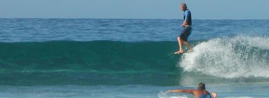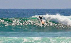 Super easy, fun wave. Breaks outside on bigger w/nw swells as a right, then reforms as a left in the "kiddie pool" tucked inside the point. Soft, sandy bottom... Bring a fullsuit for May + June!
