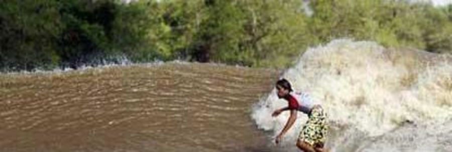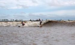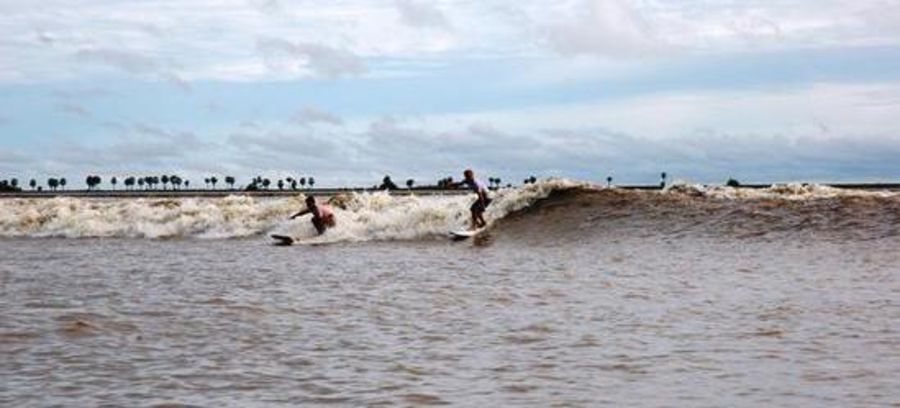Usually at equinox, high tide is coming from the sea invading the rivers and producing strong waves. Every full and new moon from January to may and august to November. In the first semester the waves are glass and perfect. In the second semester the river stayed swung, because of the strong winds and is good to do kitesurf.