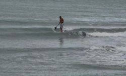 just rocked in one day, moderate to strong south-easterly blowing. Maybe some 2 footers breaking on the open-exposed beach around the corner. The wave wrapped around the headland and made a clean, fun, really perfect-looking right on an underwater cement slab.