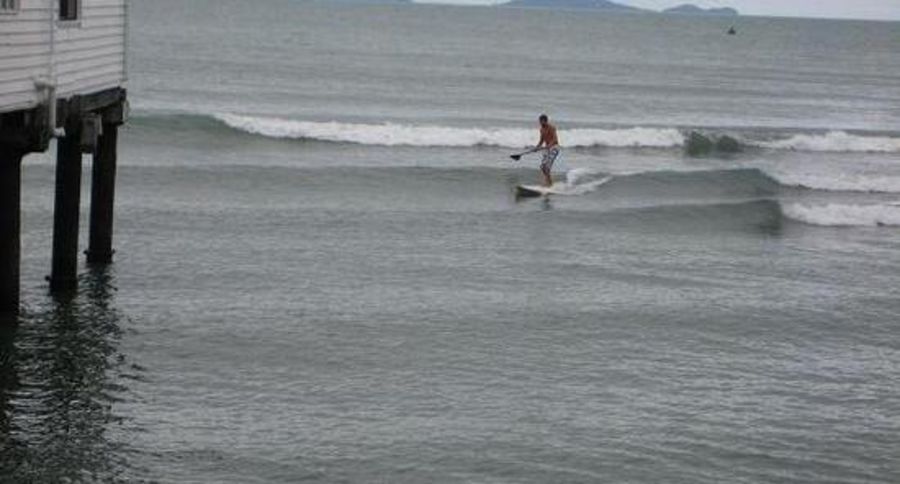 Not sure how often it breaks, but i reckon in a cyclone, there might be a few fun ones. Not sure if i'd paddle out on my regular board as there are a lot of crocs about and dont really want to be dangling over the edge in the murky water.