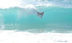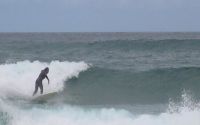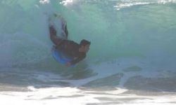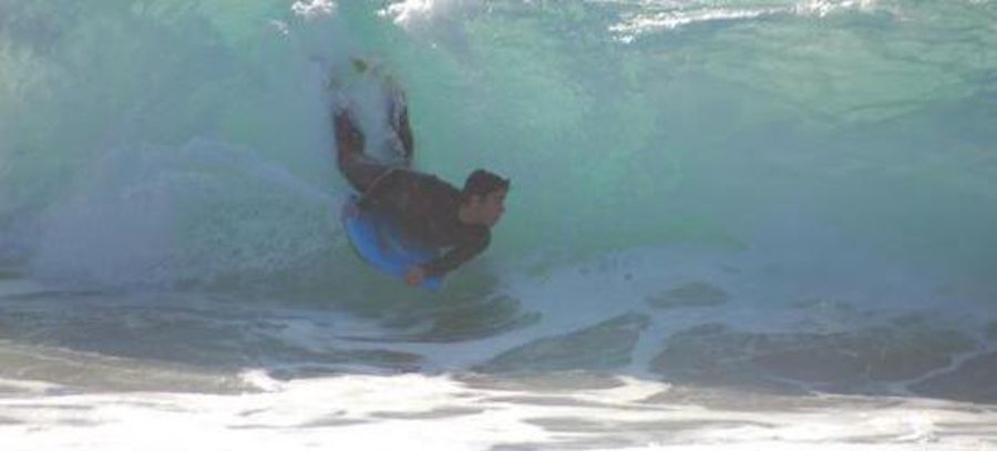 Clear sand break, no hidden dangers...but stay in the middle of the cove, in front of the life guard post, at both ends rocks under water.