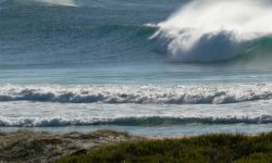Variety and consistency, semi-secret isolated spot, no crowds in winter. Headland with waves to 2-7 feet on either side, one (better) longish right hand point/beach break on the north side, longish left hand point/beach break on the south side, plus yet another long right point break (fun wave 3-6 feet) just two headlands north. Good variety for small area, with long workable walls, rare barrels, and occassionally excellent rip set up on both sides of headland can make little or no paddle to get out the back, even when big. Can be 6-7 feet, perfect, and empty in mid winter.