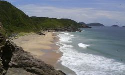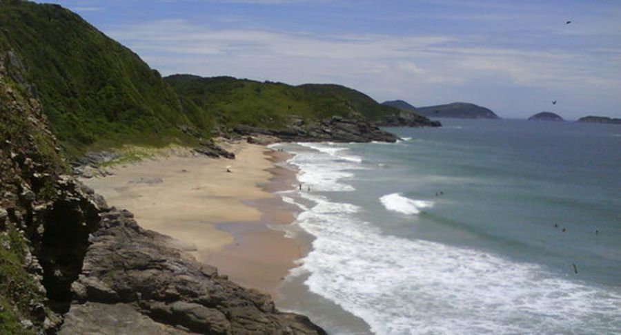 Next to the Ilha do Japonês, between Peró and Ogiva.Park the car on the Ilha do Japonês parking lot, go into the direction of a hill following the lake shore, when you get closer there's a track that will take you, up and down, direct to the beach. Take care with the rocks trace it's not safe if you never went this path.