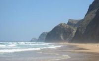 Beautiful beach in the midle of natural park Alentejano, surrounded nice hills with no human sign of civilization, just a car park and a small bar,and a imponent cliffs on both sides of the beach. Nice atmosphere quite and relexed also in hi-season(August)as you never feel the crowd on the beach as in the water.