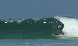Definitely good to surf year round, also in August with small waves 'cause are hollow and fast.it's more protected from NW wind than Praia Carrapeteira.Easy acces to the water, no rips up to 6ft-2m.With low tide,3ft swell there are to good point:in front of carpark, where a submerged rock is(left),and at the of the beach(short walk 10min)next to the rocks(left&right)