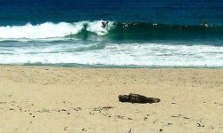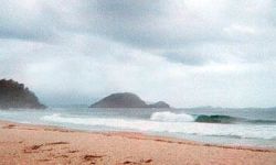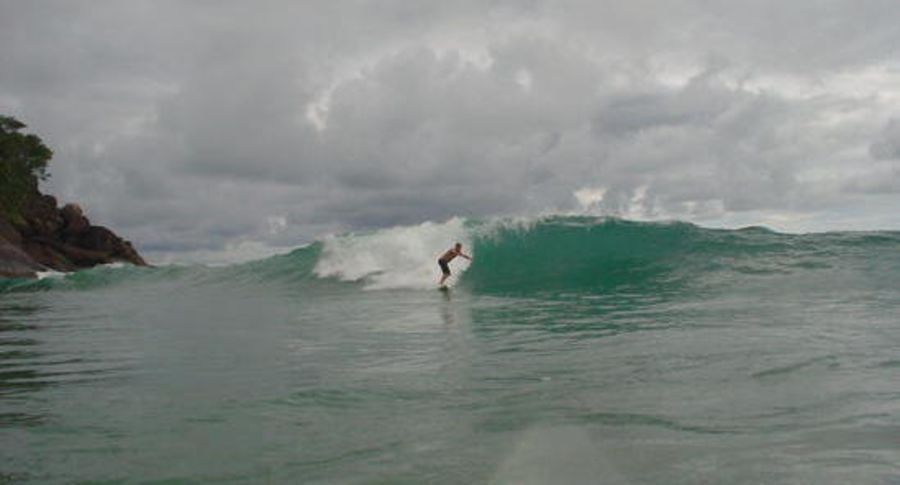 in the left side of the beach is the better session of the wave. actually, the place is a left surf spot. there is a big stone where the swell heats and generate an small wave that runs in a a 90 degrees angle considering the original swell. that situation produces a triangle and bingo, you have a very powerfull lefthand wave. very hard to surf and with lots of barrels.