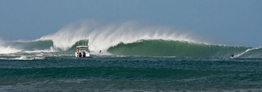 Usually only tow-ins when it is really pumping due to the strong currents. Huge A-frame peaks break top-to-bottom over a shallow, diamond-shaped sandbar forming thick, fast and hollow waves.Broken boards and road rash are common. Just maintaining position on the peak is like paddling upriver, and if you get caught inside on a big day without your board, you're swimming for your life.