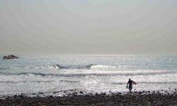 Beach break, empty and nice. Waves are sloppy, but once a swell hits, it can be fun. Definitely a place for longboarders, bodyboarders and kiteboarders, forget about shortboards. Water is fairly clean and the beach is huge. Different breaks along the shoreline, watch out the granite blocks near the mouth of the lough, southward.