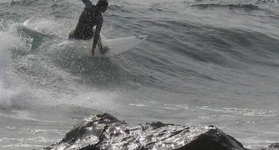 To paddle out, you have two options. The first, for experts only, is to walk out on the rocks and jump in right at the break between sets. 'course if your timing is bad you'll get clobbered. The suggested method is to paddle out in a 6 foot gap in the rocks on the right hand side of the beach. There is a permanent rip there that sucks you out in no time.