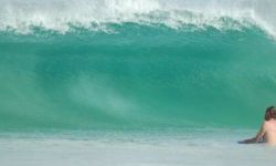 There are two but sometimes three main take off spots in the bay at the north end which is the main wave if there is a bit of swell around you can sit next too or near the great big rock that juts out of the water and take the rights. If you can be arsed you can walk down the beach to the south end and take the lefts which is usually a little lighter on the crowds. sometimes the wave breaks well in the middle but mostly that just closes out.