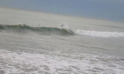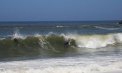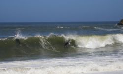 There are really three waves, a left at the south end, a peak in the middle and a right at the north corner. Wave holds size and is juicey. Needs conditions to come together. Lots of power and thick lips. Not for beginners when cranking. the rockaway right at the north end gets good twice, maybe three times a year. Also the wave at the south end of the beach is a right that breaks into a deep channel, which is definitely much more consistent than the north end. The left that this poster talked about was probably the left that breaks off the rocks that the guy is surfing in the picture, and it never gets very good.