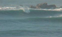 - hollow waves on the middle of the beach