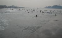 This spot can be as fun as Inamuragasaki on the right swell but less crowded than the other spots on the Shonan Coast. Probably because of its driving distance and the intimidation factor of the wave itself. During the last typhoon swell I surfed in Japan there was a crowd at all of the usuall ridable breaks on Shonan, so my bro Dave and I took a chance on Sakawa. We had the spot to ourselves for a while, then we were joined by two profesional Japanese surfers (with photographers in tow) who were way cool to us. Thats it, not another soul out. Epic day! That being said, I have been skunked by the swell gods on a few occaisions going there.