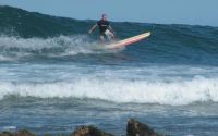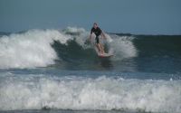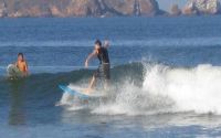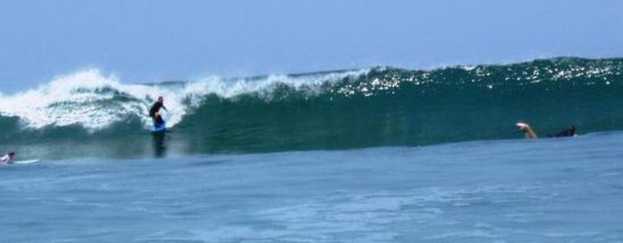 As you drive up to La Saladita there are numerous places to park your car near the restaurants. Getting out - it's a long paddle, but worth every stroke. Best place to enter the water is just south of the restaurants where the bottom is still sandy and you can avoid the breaking waves. There are 3 good breaks on a SW swell day in summer. Good for all experience levels. Wave speed tends to be slow on smaller surf days, very user friendly and better on a longboard than a shortboard, but can be great on a shortboard with big surf conditions.