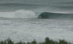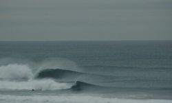 Very, very sharky. Several attacks here in last 10 years. Also getting progressively more crowded. Gets around 50 guys out on any given weekend day when its not to big. However, big stretch of beach, so it can hold a crowd. Also, very pretty beach, natural surroundings, pack your trash! south end of beach is all sand dunes and beach grass, north end gets rocky with cliffs. the beach is seperated by the beautiful, sand-bar creating, shark attracting salmon creek. Most people surf near the mouth of the creek, can always find empty, surfable wave to the south.