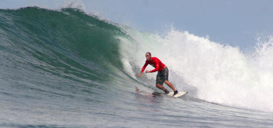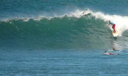 It pretty much works all year long, so if you just want to go and surf hardcore, for your whole vacation this is the spot. Picks up all swell.