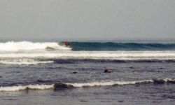 A beautiful left point break, rated it as regional classic but can become world class on big summer swells. Needs a lot of swell to start turning on, like most waves in this area. The wave hugs a cliff and peels along it. There is another wave to the immideate north that may work on small swells, a rivermouth/point combination that can produce perfect lefts from 2-8 feet. Shark worries can be high at the rivermouth. There are some sharp rocks on the bottom so easy on the bailing. People have hit have hit their faces on rocks, but it is mostly when waves are seriously ripping.