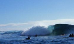 Over 8' - 9', the spot is dangerous because there's a strong rip out to the Pacific ! (2 deads in 1995).