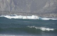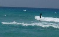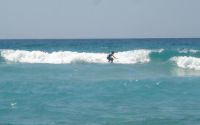 Only works with a Northwest, western wind (summertime only - august) bringing in swells from the mediterranean - wind generated, sloppy swells but can be surfed. Short waves, ride for a 10 secs at best (if you ride all the way out to the beach...)