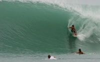 Its an average-ok left, only surfed it once at 2-4 feet, 4-6 or even bigger might be better,as its pretty deep out the back. It barrels near takeoff, pretty close to the reef,then the wave fattens out into the bay over about 100-150m, but it didnt line up that well when small. Another section might be rideable and link up a bit further up the point when it gets bigger-I could see it barreling about another 100m further up. Locals say it does lineup when bigger, but I wouldn't necassarily trust them.