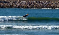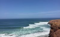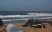 The spot is in the center, when you want to camp close by, there is a camping which is almost for free a bit more south into the city along the cliffs overlooking the ocean. Before you go into the water, look and smell for pollution, then sometimes there is this ugly sewer-waste, which you for sure get sick from. Also look out for big rips with the change of tides and when there flows a lot of water out of the river.
