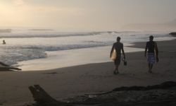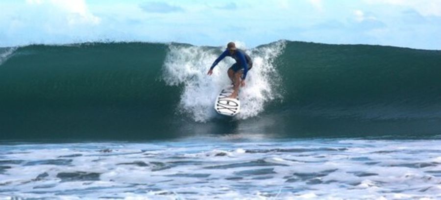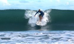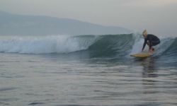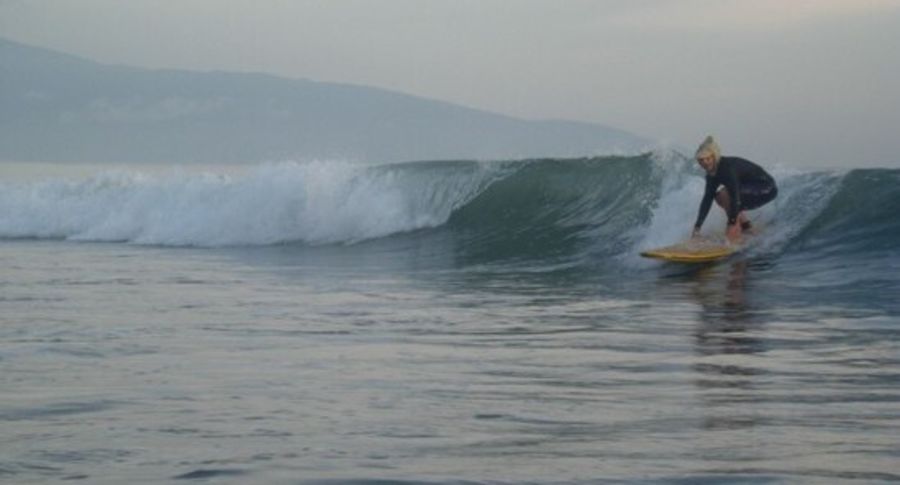 Great spot with a small village and friendly locals. Main down-side is that it's a bit far from town, but pretty consistently able to catch waves with a long-board here even in off-season. Sand fleas can be a bit annoying, so best to keep in the water as much as possible. We use a mixture of a touch of Dettol in our sunscreen that seems to help keep the sand-fleas at bay.