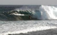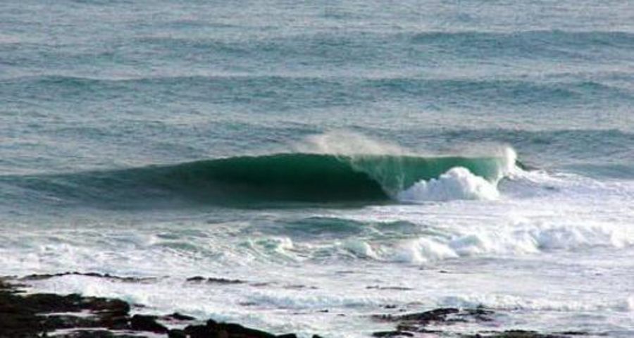 Ugly righthander that needs a 5-6+ swell to start working properly. Anything smaller and it becomes impossible and anything bigger is asking for injuries. Shallow. The wave breaks into a rocky bay. race it, tuck into the barrel, come out and pullout before the closeout section. On smaller days the reef infront of it works OK. Heavy fat bastard of a wave. We bodyboard here, dont think it can be standup surfed. Can be pretty difficult getting out. Make sure you time the sets well when paddling out or you're fucked.
