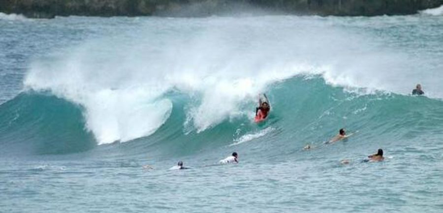 Super drop but the wave is Short lenght. Breaks just three four time per year: is a really nice wave but really crowded by locals that don't like to share this rare wave.