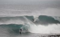 Giant wedge shaped a-frame peaks. Massive deep ocean atlantic swells reach here and unload on triangular reef. It has never been surfed properly at its potential, which is known to be around 40 to 60 feet and perfect.