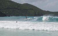 Hollow as a friggin log on the right swell but also very very shallow, so just dont fall on the takeoff or you will hit the bottom, that is full of urchins, also elkhorn, fire, and staghorn coral lurk inches below the surface, you can ride it all the way over the reef to the channel then it wiil get deep, carefully pick your way back out or paddle all the way back around.