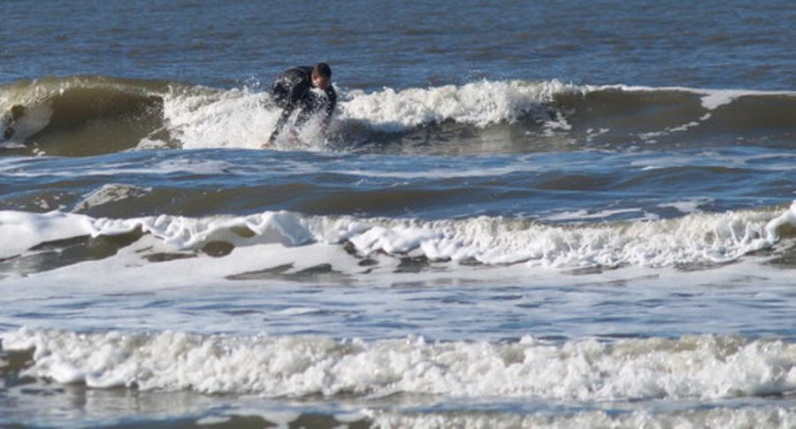 The sand-bars in front of "Bad" and "Ording" are able to produce some waves if there's a stronger wind from the sea over some time.