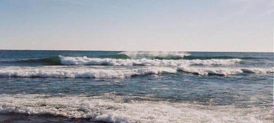 This is the heaviest wave on the Lakes. A deep, 300 mile-long trench, ends abruptly at Stoney Point. The full brunt of open sea swells release on the rock shelf. It is powerful, beautiful, and very humbling. She breaks best in the winter months, when wave-bring NE winds, turn to the north and crank up. This can cause 2-3 days of non-stop, overhead groundswell.