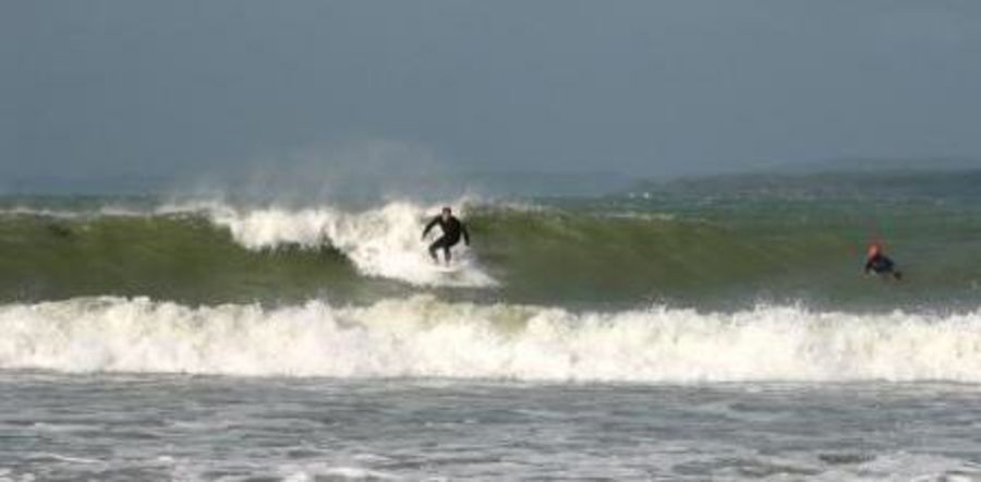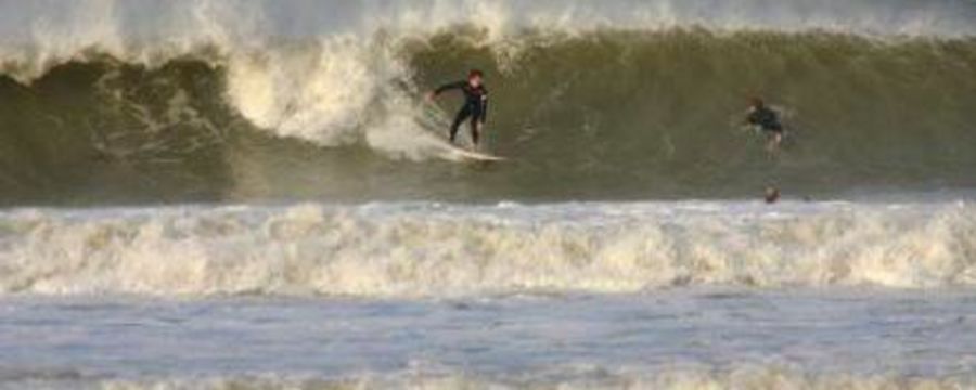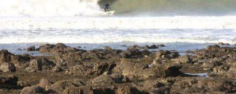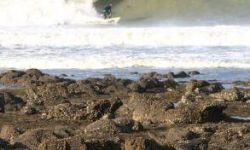 Only waves with a big NE swell. Usually only when N storm wind is blowing onshore. Unusual to get Offshore wind while there is swell. Big long sandy beach with bigger waves at the southern end. There is a rock reef at the north end which works at high tide providing hollow lefts.