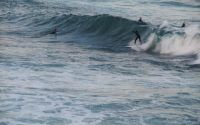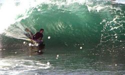 Mainly a bodyboarders wave. takoff is crucial when swell is bigger. Can be really fun and makable at 2 to 3 ft. Two reefs, one on either side. South side reef is wedgey and more hollow and dangerous suited to lidders only. The point on big days can give rides across the whole beach.