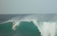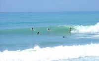 Park your car in the dirt lot (if it's a good day you'll have trouble finding a spot). This is definitely a shortboard wave but a good longboarder can still hold his own. The wave can break 100-200 meters out, so it's recommended to wear neoprene boots to walk across the coral unless you plan on paddling a heck of a lot. If you paddle out, be careful. It's shallow enough that I've gotten urchin spiks in my thumb. It breaks right starting at the point. The point is usually where the wave breaks best, but it's also the shallowest.
