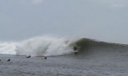 This place can fire like anywhere else that I've seen on this site. It doesn't happen much but when it doe drop everything and go. On good days the swell will wrap around the tip of the jetty and start off with a large (double overhead) crumble that peels left for 50 yards then hits the mid break and starts to line up much faster. The inside is half the size usually but can still be overhead and very hollow.