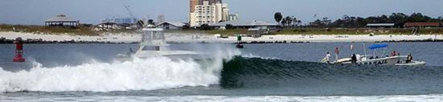 amazons is by far the best wave the gulf coast has to offer, the wave is best on a south east swell. it goes off a lot in the winter because we get so many hard onshore s/e windswells that can be like chest to head and sometiems it gets overhead. due to the direction the pass is facing a SE wind is strait offshore, not to mention the jetty blocks most of the wind anyways so its almost always glassy. the jetty formed a perfect shaped sandbar that breaks just like a left pointbreak. theres even a channel. its a left that starts off crumbling and can jack up and barrel on the outside depending on the size, then once it hits the middle the barrel ends and it starts to peel again once it gets to the middle and it goes for about 25 yards before it hits the inside then once it hits the inside its usually about 3/4 the size but still super heavey and can give u a rly fun backside barrel. during hurricane ivan it was about 5-7 ft (8-12 ft faces) and offshore barreling hard.
