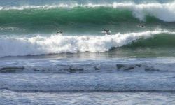 During larger days you can paddle out along the Rock in power plant outlet to get out without having to duck as many waves (plus it is 5 degrees warmer). Just beware that you walk down the rocks by the fence, so watch dinging your board on the rocks, so don't do this method unless you know how to do it.