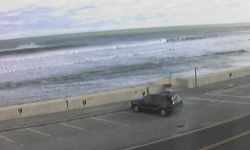 Metered parking, free in winter, right at the wall, steps down every few blocks or so. The Wall is normally larger than anywhere else. Easy to access so it's more crowded, too, but the vibe is mellow, lots of beginners, scattered peaks. At size it's a pretty demanding paddle out, just wave after wave, and closes out a lot. But when it's big, you'll be out there alone or with only a few.