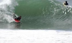 Welcome to South Africa's best known wedge wave. A bodyboarders paradise, it is situated in the popular holiday beach resort town of Plettenberg Bay and offers big barrels on the right days. The Wedge breaks on the sand close to shore in the left corner of the beach. It gets insanely hollow and powerful for it's size. Swells bounce off some rocks and head parallel to the beach to bump into other oncoming swells, creating the wedge. Not all the waves wedge up in this way. However, if they don't, it usually means a closeout because the wave breaks too close to shore and is not really depending on a particular sandbank to break. A short but zippy barrel can provide lots of fun in the right conditions. Gets insanely big at times on winter swell.