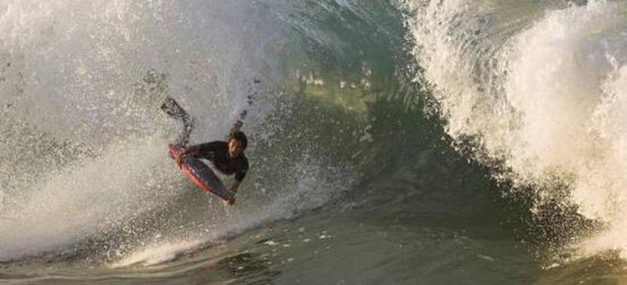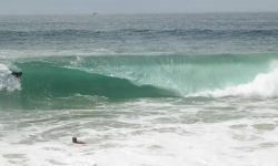 As heavy a spot as anything on the Mainland. The waves are a by-product of improvements to the groin (rock jetty) on the north side of the Newport Harbor entrance undertaken during the 1930s. When conditions are just right and the waves approach the shore at the proper angle (south swells), an approaching wave will reflect off the groin creating a second wave. The reflected wave meets up with the following wave of the set and forms a peak. Because of this effect, waves at the wedge are often several feet larger than waves at other south facing beaches in Newport on any given day.