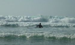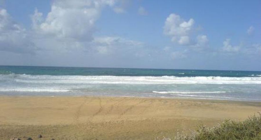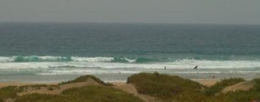 Drive to Tindaya. It's a small town after La Olivia on the main road. If you are in Tindaya follow the off-road track for about 4 Km to the beach which is called "Playa de la Mujer". You'll see some cars which belong to campers. You can see the spot from there. Park your car and surf!